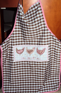Apliquei-as num avental, feito pela Sandra do blog 3 Ervilhas. A Sandra fez nas medidas que pedi para oferecer a uma amiga.